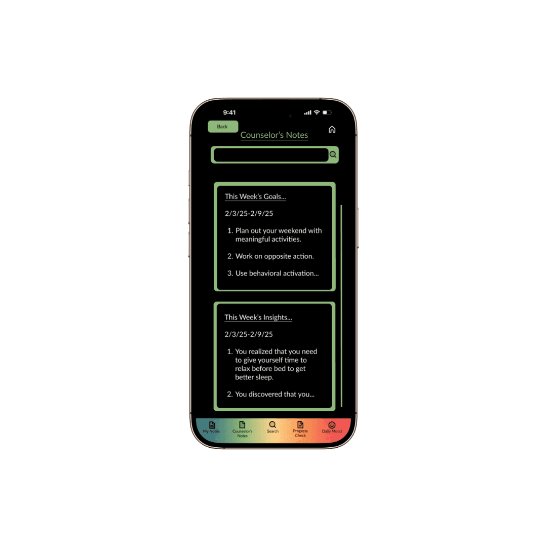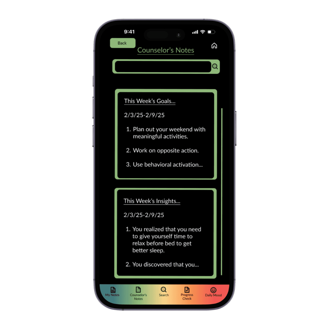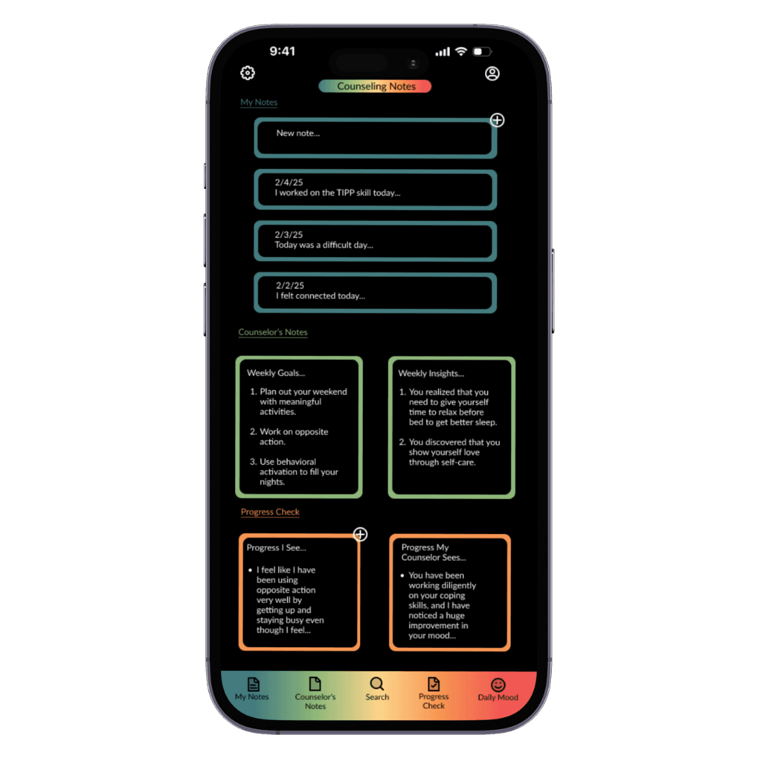 Designed to optimize counseling note-taking and strengthen the therapeutic bond with counselor and client collaboration in between counseling sessions.