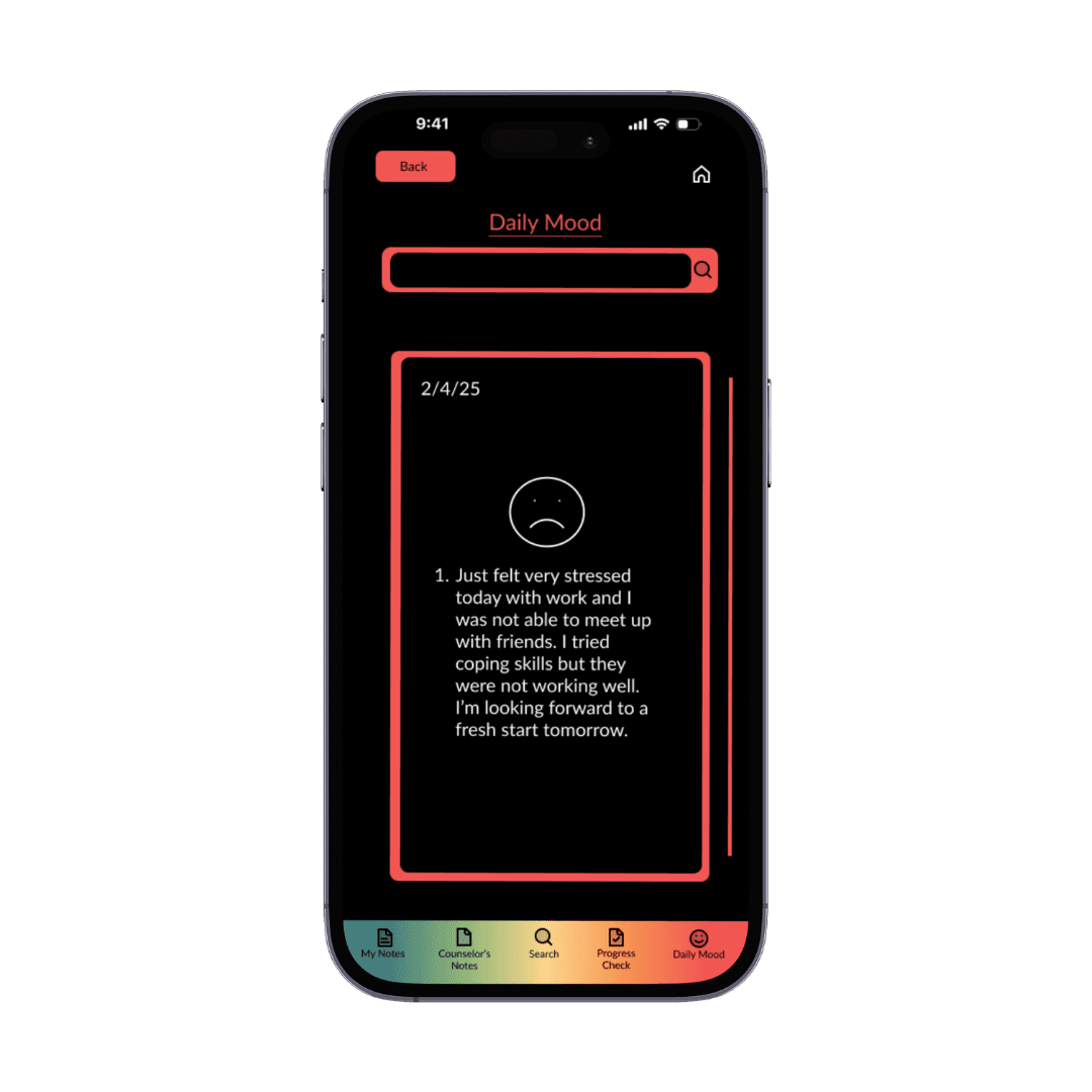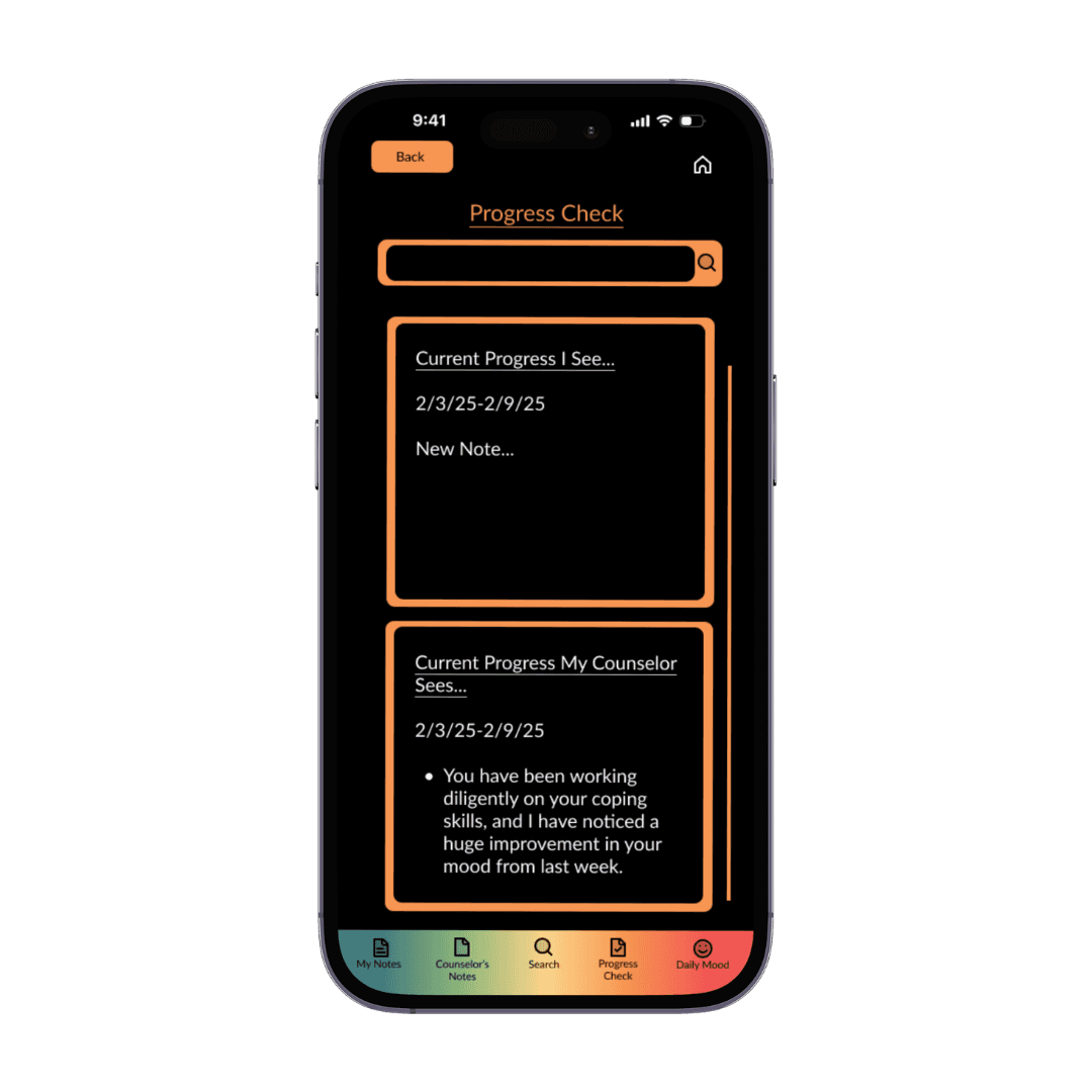 Wants to stay on top of their counseling notes and their progress in counseling while juggling their responsibilities and enjoying everyday life.