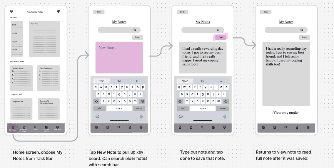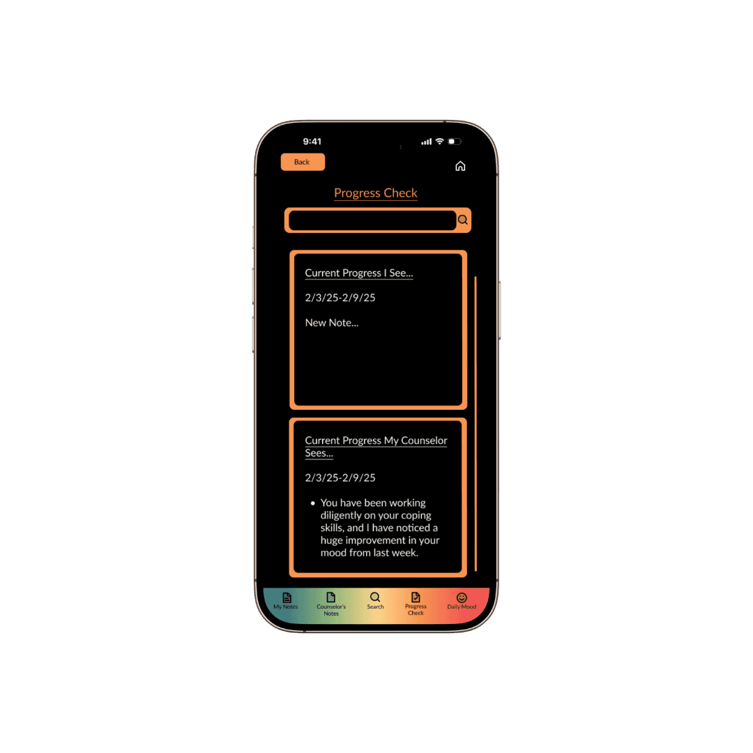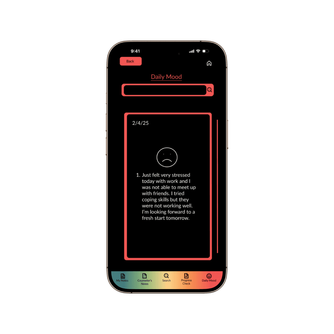 By checking in with users throughout the design process, I optimized Counseling Notes for the clients that are actually going to be using the app, customizing it for the best experience they could have, not just what I as a designer thought the app should be.